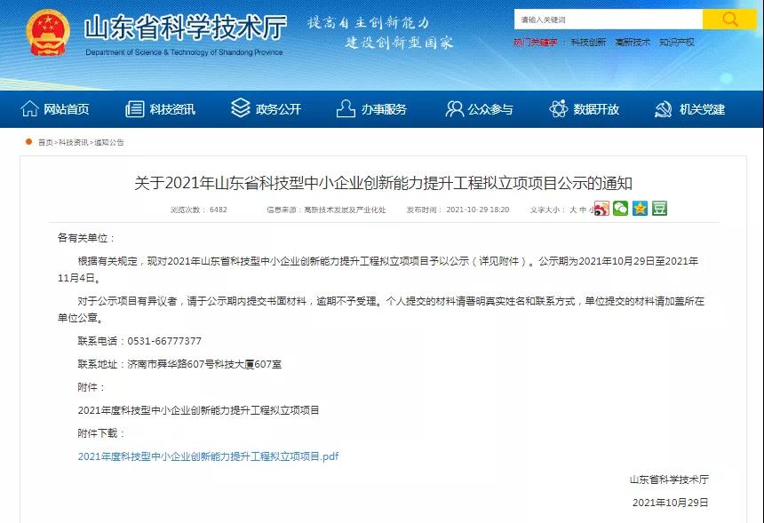 技術(shù)創(chuàng)新再添亮點!公司獲2021年山東省科技型中小企業(yè)創(chuàng)新能力提升工程立項項目公示